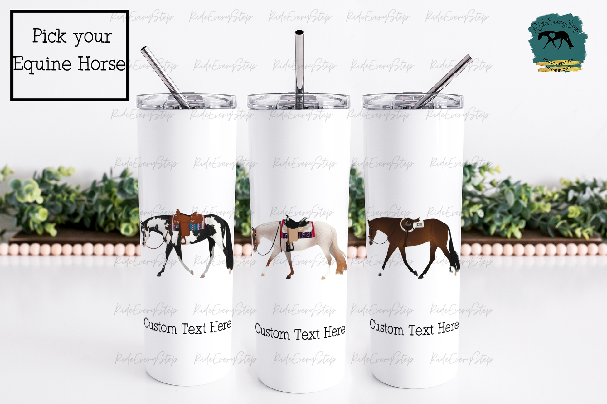Custom Equine Design Travel Tumbler with lid & straw