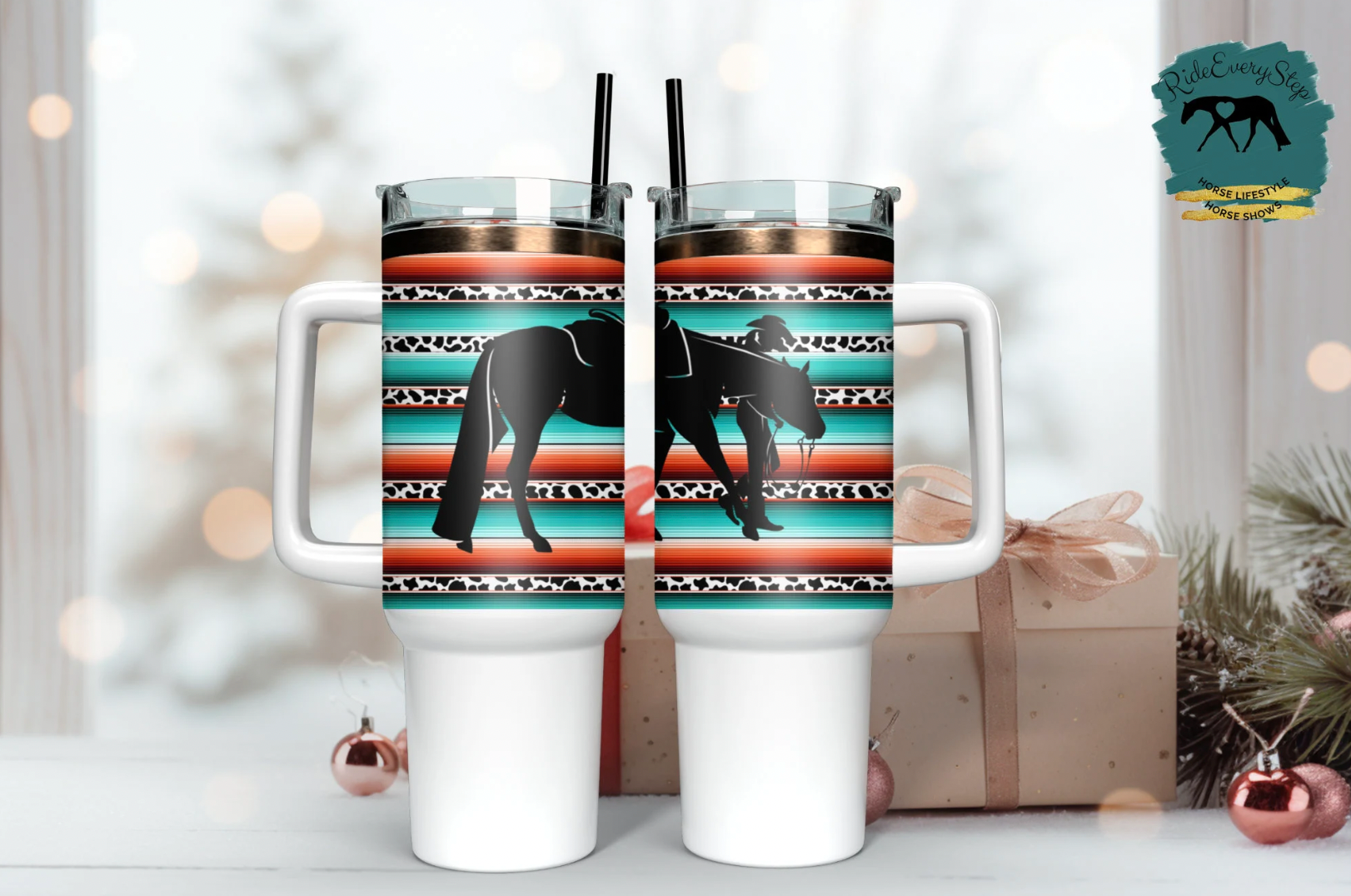 Printed Horse Custom Travel Tumbler with lid & straw