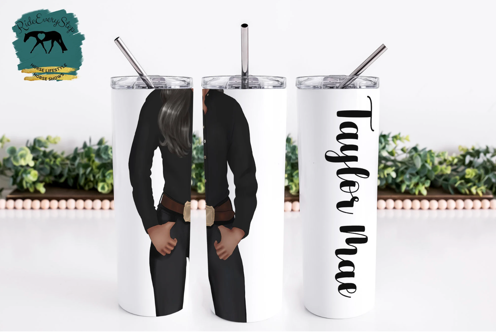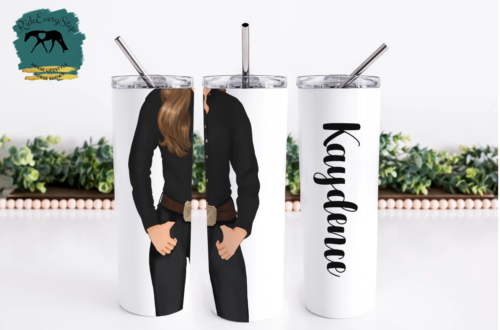 Western Horsewoman Customizable Tumbler with lid & straw